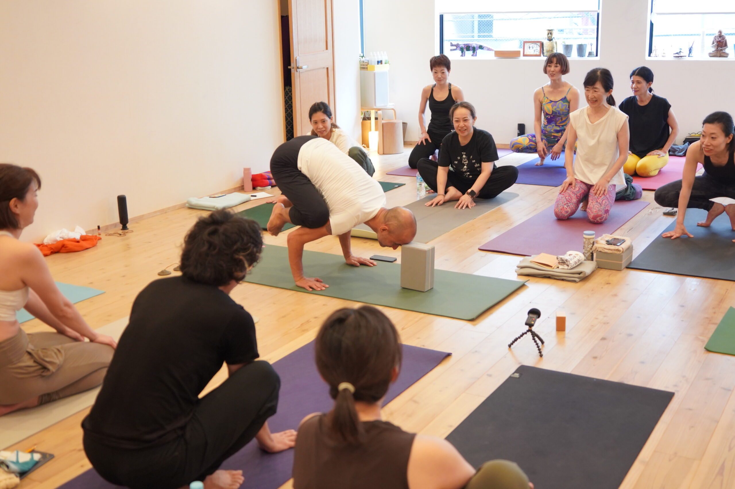 午前は3時間のプラクティス(特に2日目は逆転のポーズがテーマになります)、午後は3時間の講義、さらに1時間半程度の瞑想が続くので、ある程度ヨガを続けている中上級者の参加を想定して、プログラムを組んでいます。