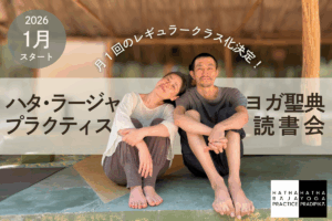 2026.1start 『ハタ・ラージャ・プラクティス』&『ヨーガ聖典読書会』レギュラークラス化決定! 『ハタ・ラージャ・プラクティス』&『ヨーガ聖典読書会』は、どちらも連続講座ではないので、単発受講が可能です。ご都合のいい日程のクラスを、都度お申し込み&お支払いいただくことが可能です。 ◆『ハタ・ラージャ・プラクティス』…
