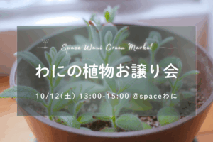 2025/10/12(土) わにの植物お譲り会 〜 Wani Green Market 10/12(日)13〜15時に、スタジオにある植物たちの中で、大きくなったものや、株分けに成功したものなどを、お手頃な価格でお譲りする会を開催します。お申し込み不要、出入り自由ですので、お気軽にお立ち寄りくださいませ。 …