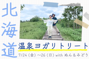 2026/7/24(金)-26(日) 【北海道・支笏湖】温泉ヨガリトリート with ぬん&みどり ぬんとみどりによる、温泉やヨガで、心身ともにリラックスするリトリートを、7/24(金)〜26(日)、北海道・支笏湖にて開催します。暑さが厳しい季節を避暑地・北海道で涼しく過ごして、残暑を乗り切る英気を一緒に養いましょう〜…